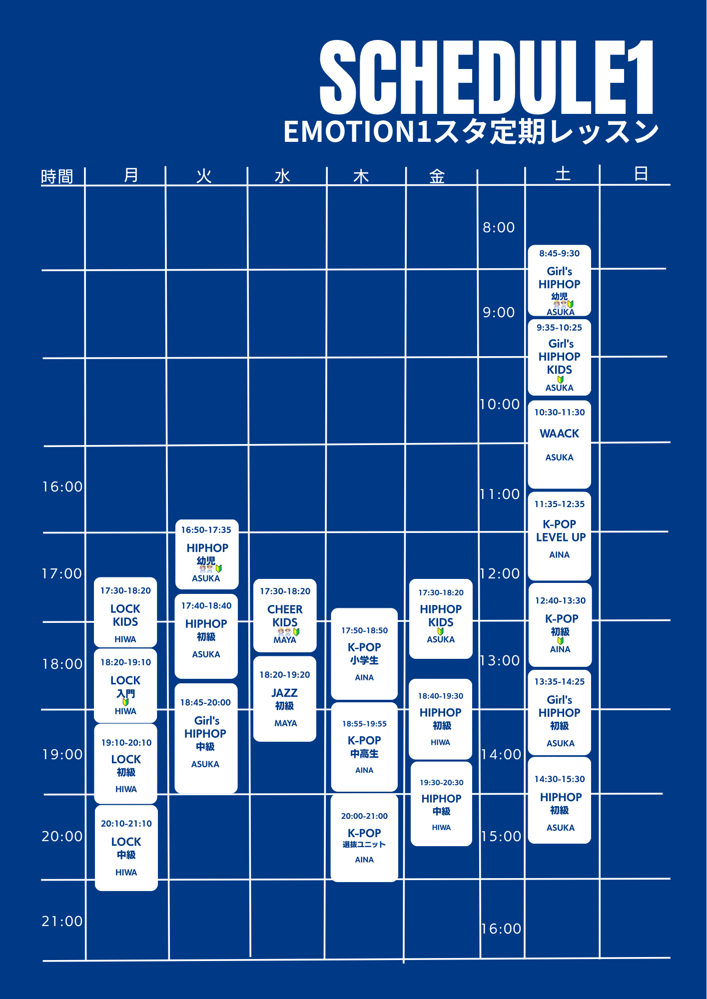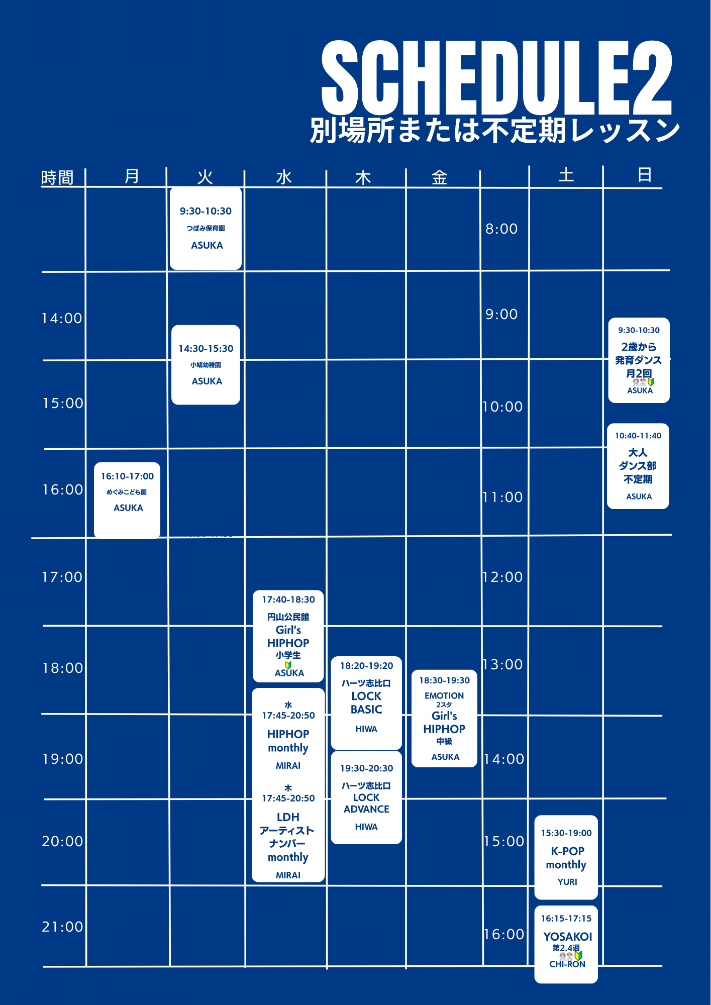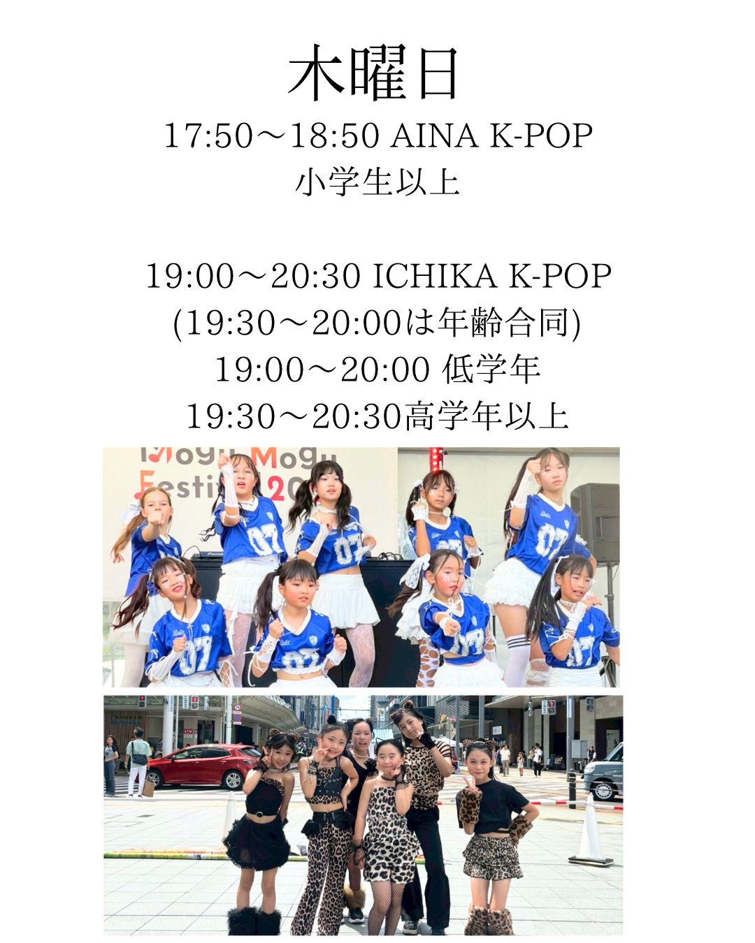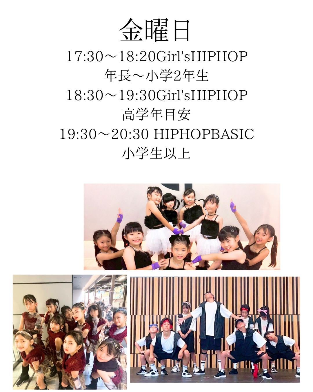 GIRLS HIPHOP…HIPHOPの動きを取り入れた”しなやか”でかつ”グルーヴ感”や”ダイナミックさ”を明らかにしたダンス。 アーティストのバックダンサーなどでも良く踊れるダンスジャンル。動きが特徴的な最近流行りのダンススタイル。